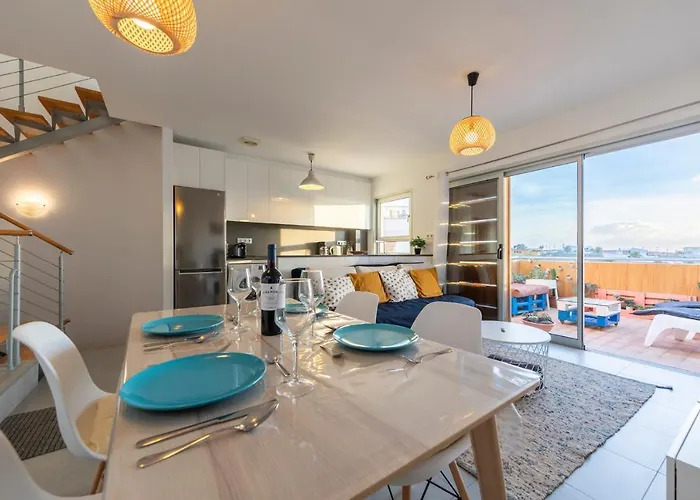 Apartament posiada również pełnowymiarową kuchnię z piekarnikiem i zmywarką do naczyń. Apartament o powierzchni 135 m² leży tuż za rogiem od dworca autobusowego Arenas del Mar. Goście mogą korzystać z tarasu z widokiem górę.